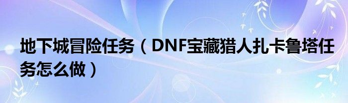 地下城冒险任务(DNF宝藏猎人扎卡鲁塔任务怎么做)