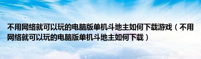 不用网络就可以玩的电脑版单机斗地主如何下载游戏(不用网络就可以玩的电脑版单机斗地主如何下载)