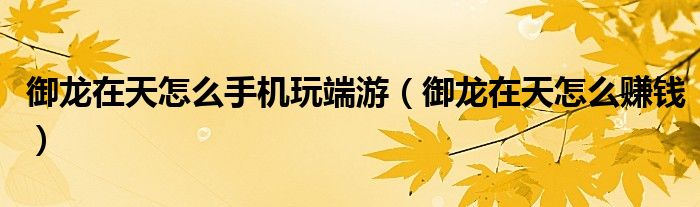 御龙在天怎么手机玩端游(御龙在天怎么赚钱)