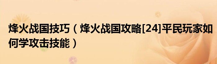 大家好,小太来为大家解答以上问题。烽火战国技巧,烽火战国攻略[24]平民玩家如何学攻击技能这个很多人还不知道,现在让我们一起来看看吧!