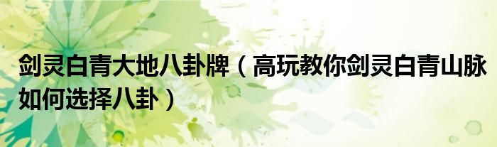 剑灵白青大地八卦牌(高玩教你剑灵白青山脉如何选择八卦)