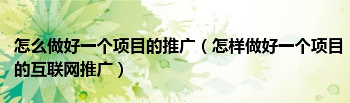 怎么做好一个项目的推广(怎样做好一个项目的互联网推广)