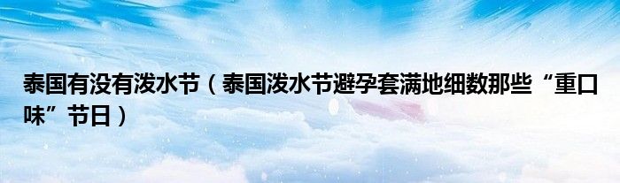 以上就是【泰国有没有泼水节,泰国泼水节避孕套满地细数那些“重口味”节日】相关内容。