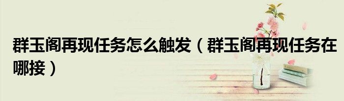 群玉阁再现任务怎么触发(群玉阁再现任务在哪接)