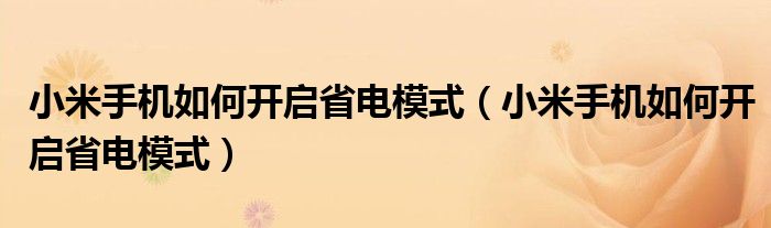 小米手机如何开启省电模式(小米手机如何开启省电模式)