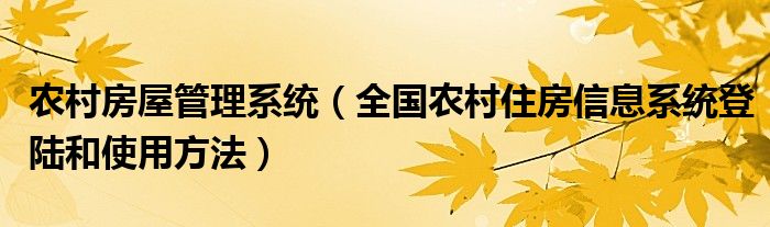 农村房屋管理系统(全国农村住房信息系统登陆和使用方法)