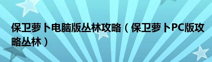 以上就是【保卫萝卜电脑版丛林攻略,保卫萝卜PC版攻略丛林】相关内容。