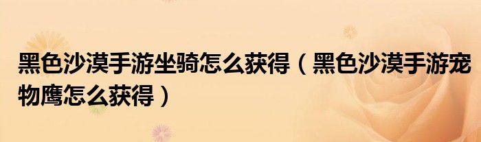黑色沙漠手游坐骑怎么获得(黑色沙漠手游宠物鹰怎么获得)