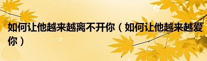如何让他越来越离不开你(如何让他越来越爱你)