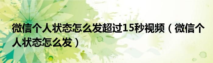 微信个人状态怎么发超过15秒视频(微信个人状态怎么发)