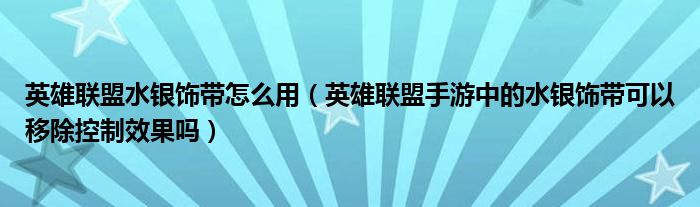英雄联盟水银饰带怎么用(英雄联盟手游中的水银饰带可以移除控制效果吗)