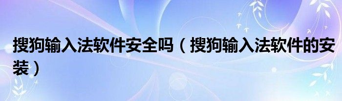 以上就是【搜狗输入法软件安全吗,搜狗输入法软件的安装】相关内容。