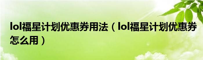 lol福星计划优惠券用法(lol福星计划优惠券怎么用)