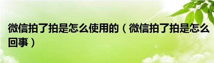 微信拍了拍是怎么使用的(微信拍了拍是怎么回事)