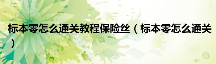 标本零怎么通关教程保险丝(标本零怎么通关)