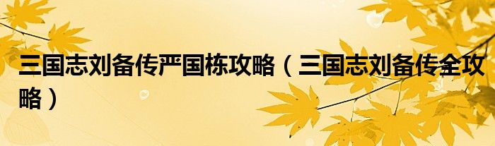三国志刘备传严国栋攻略(三国志刘备传全攻略)
