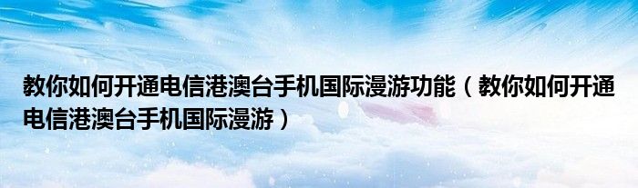 教你如何开通电信港澳台手机国际漫游功能(教你如何开通电信港澳台手机国际漫游)
