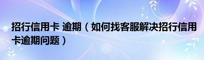 招行信用卡 逾期(如何找客服解决招行信用卡逾期问题)