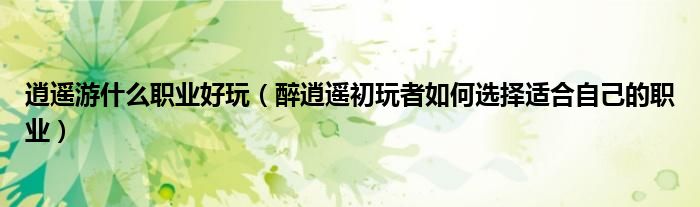 逍遥游什么职业好玩(醉逍遥初玩者如何选择适合自己的职业)