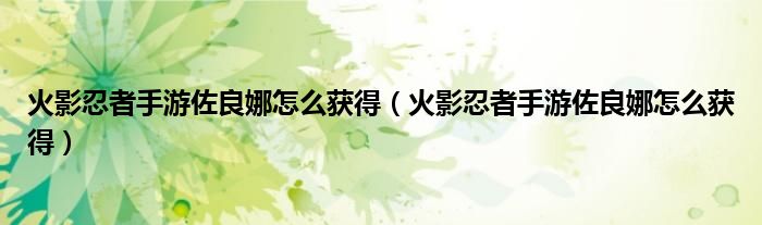 火影忍者手游佐良娜怎么获得(火影忍者手游佐良娜怎么获得)