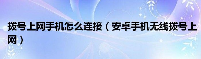 拨号上网手机怎么连接(安卓手机无线拨号上网)