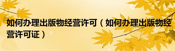 如何办理出版物经营许可(如何办理出版物经营许可证)
