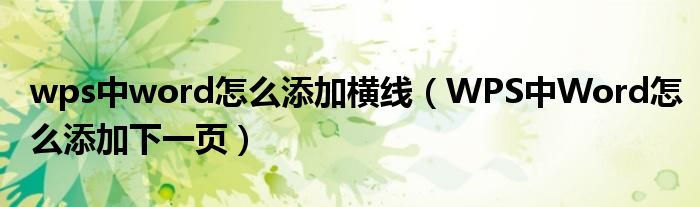 wps中word怎么添加横线(WPS中Word怎么添加下一页)