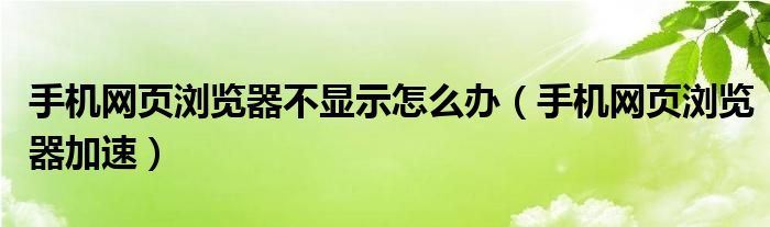 手机网页浏览器不显示怎么办(手机网页浏览器加速)