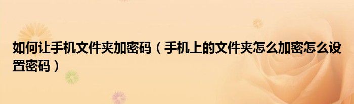 如何让手机文件夹加密码(手机上的文件夹怎么加密怎么设置密码)