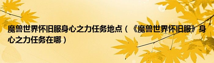 魔兽世界怀旧服身心之力任务地点(《魔兽世界怀旧服》身心之力任务在哪)