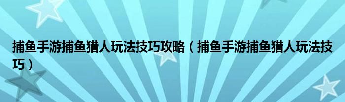 捕鱼手游捕鱼猎人玩法技巧攻略(捕鱼手游捕鱼猎人玩法技巧)