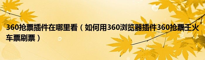 360抢票插件在哪里看(如何用360浏览器插件360抢票王火车票刷票)