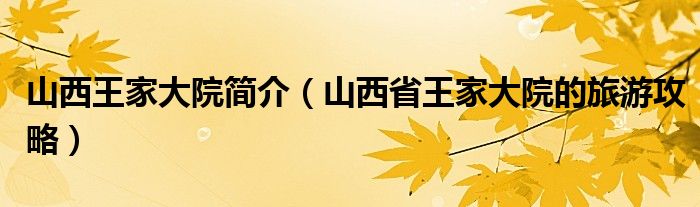 以上就是【山西王家大院简介,山西省王家大院的旅游攻略】相关内容。