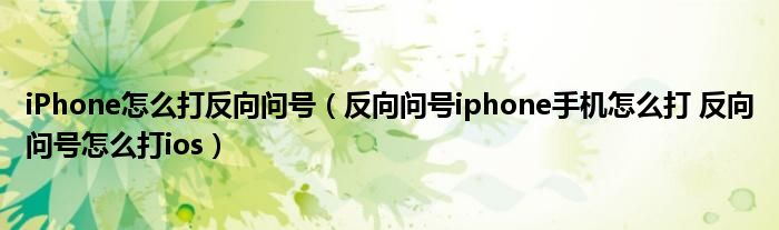 iPhone怎么打反向问号(反向问号iphone手机怎么打 反向问号怎么打ios)