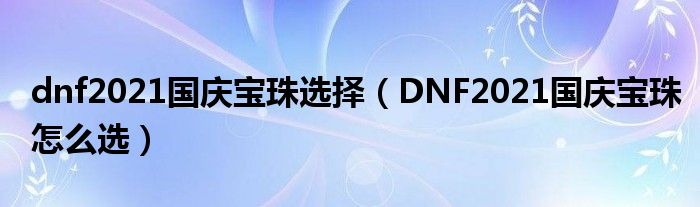 dnf2021国庆宝珠选择(DNF2021国庆宝珠怎么选)