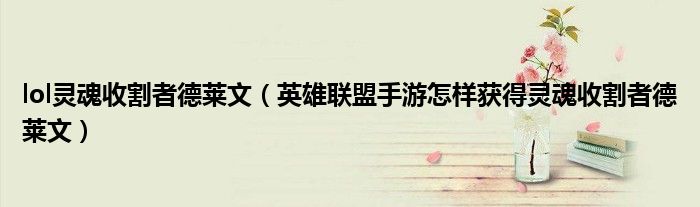 以上就是【lol灵魂收割者德莱文,英雄联盟手游怎样获得灵魂收割者德莱文】相关内容。