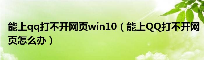 能上qq打不开网页win10(能上QQ打不开网页怎么办)