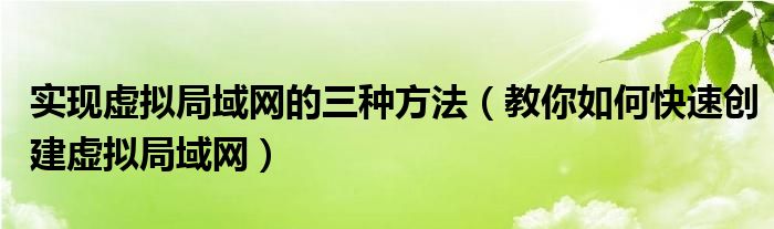 实现虚拟局域网的三种方法(教你如何快速创建虚拟局域网)