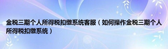 金税三期个人所得税扣缴系统客服(如何操作金税三期个人所得税扣缴系统)