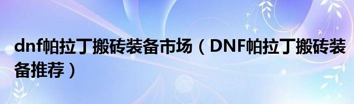 dnf帕拉丁搬砖装备市场(DNF帕拉丁搬砖装备推荐)
