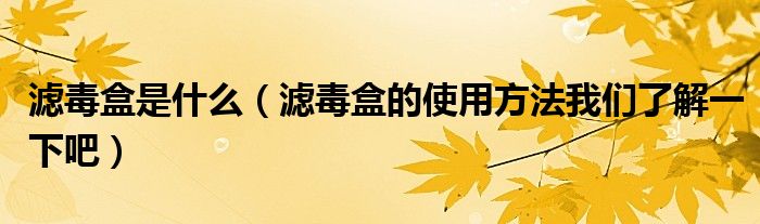 滤毒盒是什么(滤毒盒的使用方法我们了解一下吧)