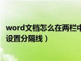 大家好,小太来为大家解答以上问题。word文档怎么在两栏中间加分隔线,Word文档中分栏怎样设置分隔线这个很多人还不知道,现在让我们一起来看 浏览全文>>