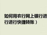 大家好,小太来为大家解答以上问题。如何用农行网上银行进行快捷转账功能,如何用农行网上银行进行快捷转账这个很多人还不知道,现在让我们一 浏览全文>>