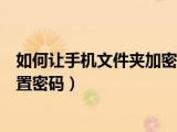 大家好,小太来为大家解答以上问题。如何让手机文件夹加密码,手机上的文件夹怎么加密怎么设置密码这个很多人还不知道,现在让我们一起来看看 浏览全文>>