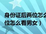 大家好,小太来为大家解答以上问题。身份证后两位怎么识别是男是女,身份证后两位怎么看男女这个很多人还不知道,现在让我们一起来看看吧!1 浏览全文>>