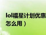 大家好,小太来为大家解答以上问题。lol福星计划优惠券用法,lol福星计划优惠券怎么用这个很多人还不知道,现在让我们一起来看看吧!1、打开 浏览全文>>