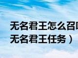 大家好,小太来为大家解答以上问题。无名君王怎么召唤,无名君王没任务怎么办 无名君王任务这个很多人还不知道,现在让我们一起来看看吧!1、 浏览全文>>