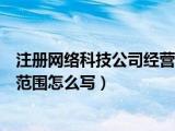 大家好,小太来为大家解答以上问题。注册网络科技公司经营范围怎么填,注册网络科技公司经营范围怎么写这个很多人还不知道,现在让我们一起来 浏览全文>>
