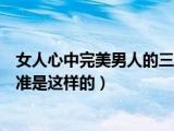 大家好,小太来为大家解答以上问题。女人心中完美男人的三个标准,男人心中的“完美女友”标准是这样的这个很多人还不知道,现在让我们一起来 浏览全文>>