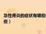 大家好,小太来为大家解答以上问题。急性肾炎的症状有哪些症状,急性肾炎的 主要表现症状有哪些这个很多人还不知道,现在让我们一起来看看吧 浏览全文>>